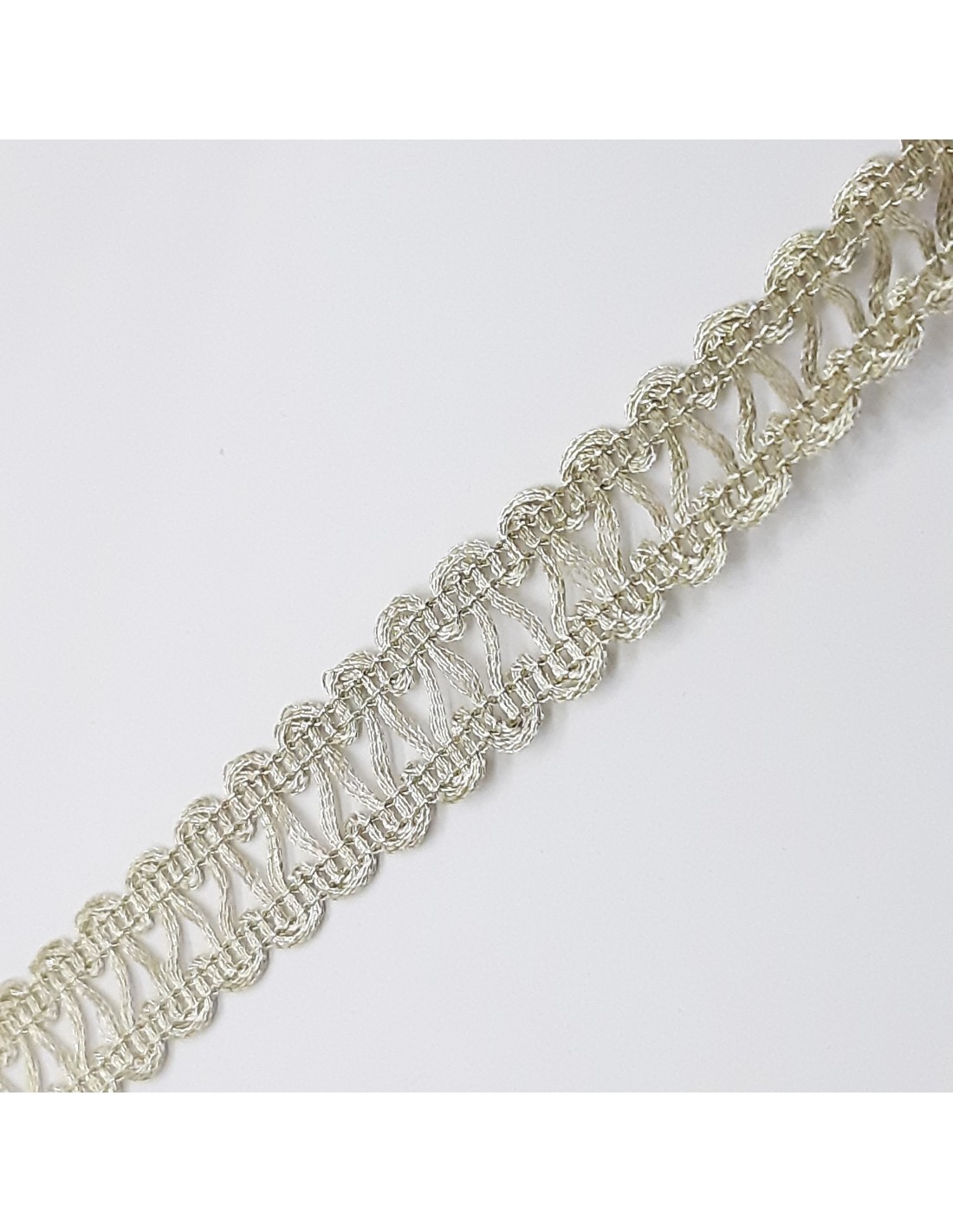 Galón pasamanería metalizada calada de color oro claro de 1,5 cms. Fabricación Nacional.