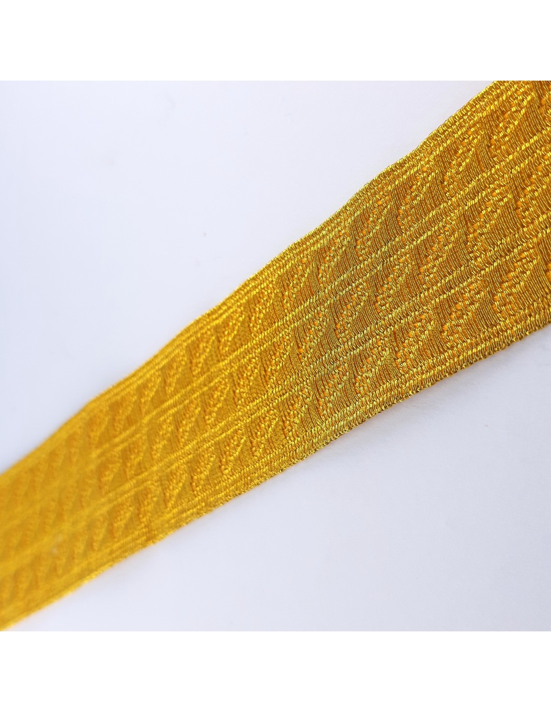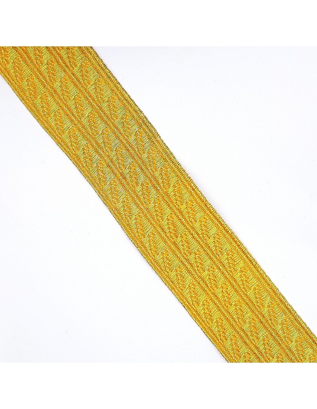 Galón pasamanería telar metalizado de 3 cms y color dorado.
