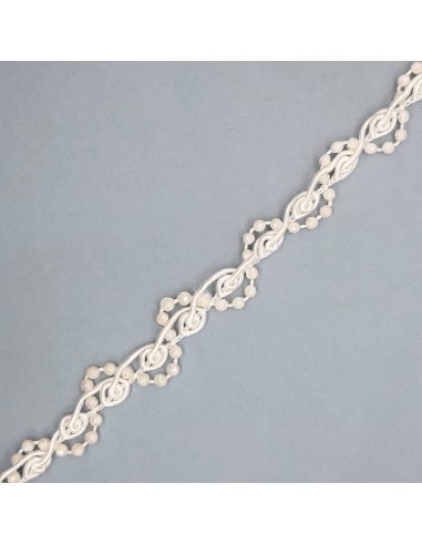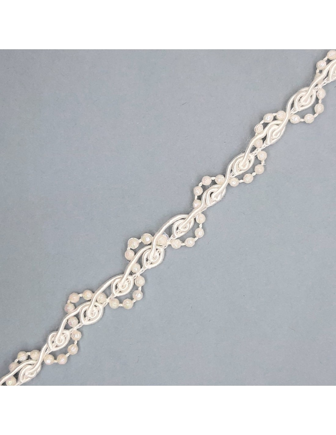 Pasamanería ondulada con perlas de color blanco de 1 cm.