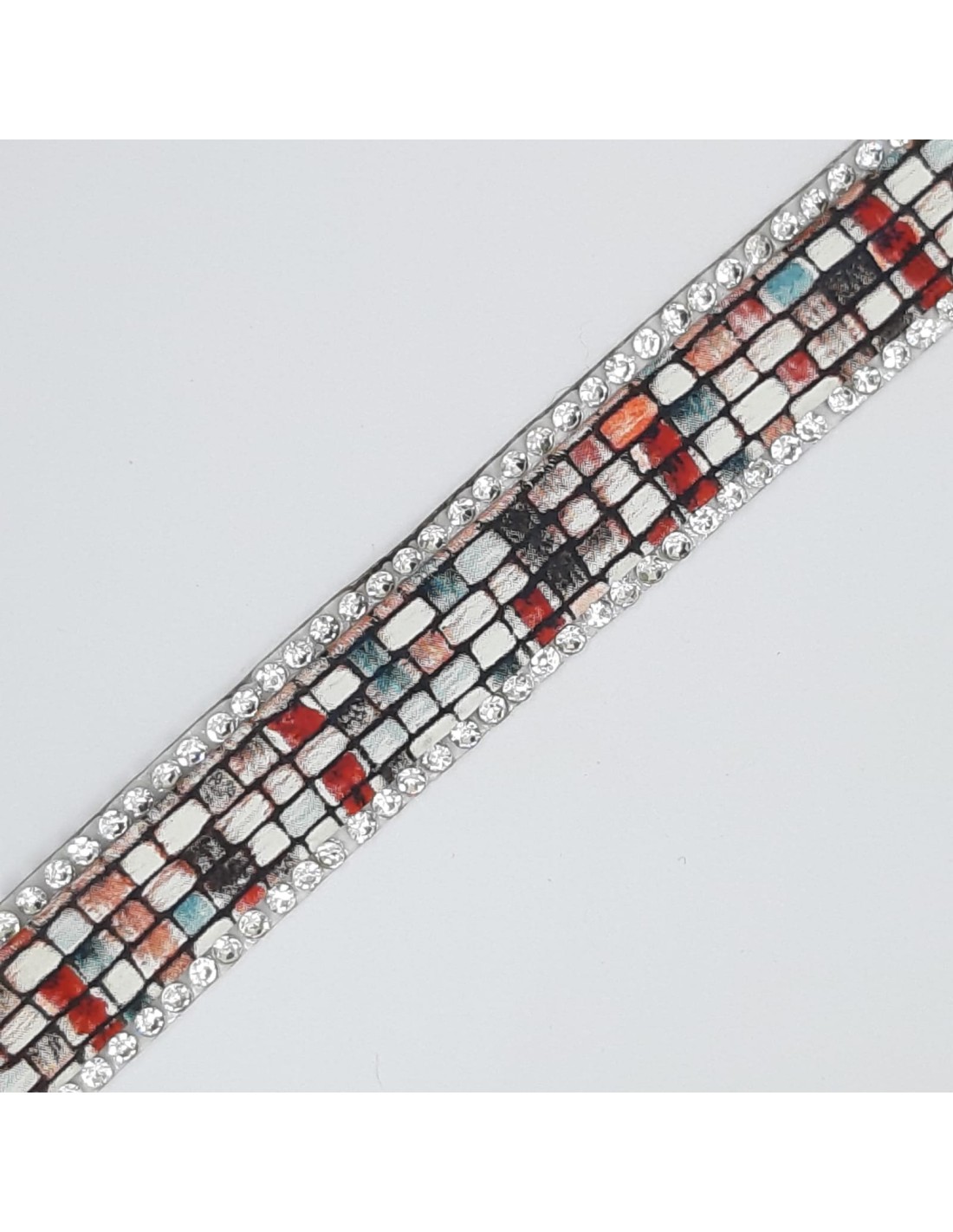 Galón o pasamanería fantasía de 1,3 cm. Cinta de piel con piedras strass decorativas.