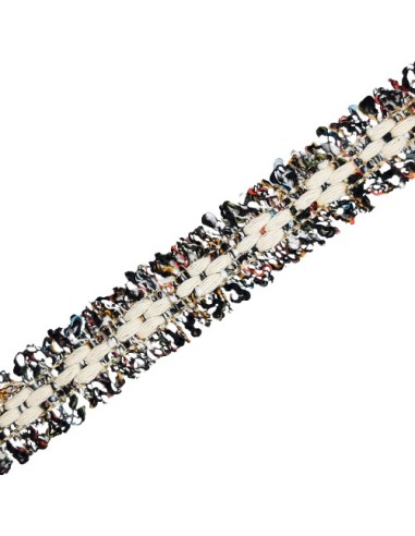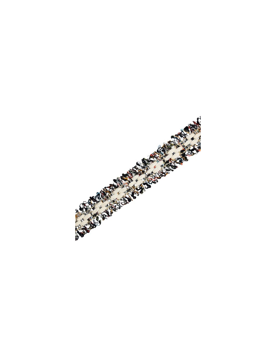 Galón pasamanería combinada en varios colores con cordón algodón beige y hilos dorados de 25mm.