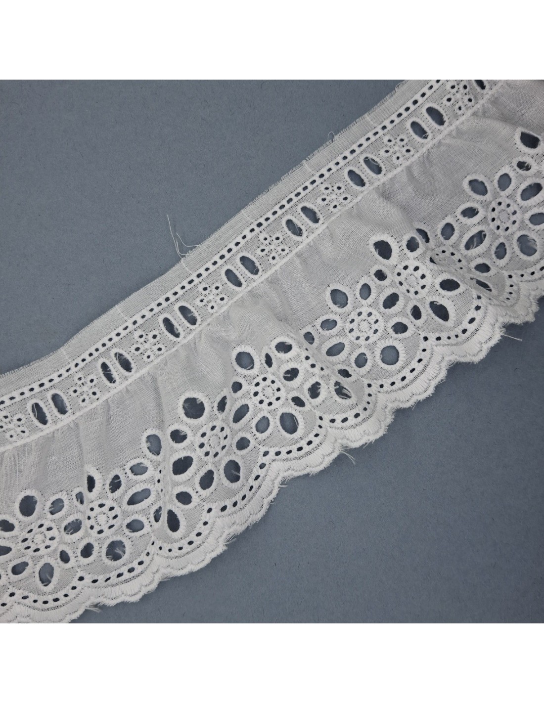 Tira bordada fruncida con pasacinta blanca de 8,5 cm.