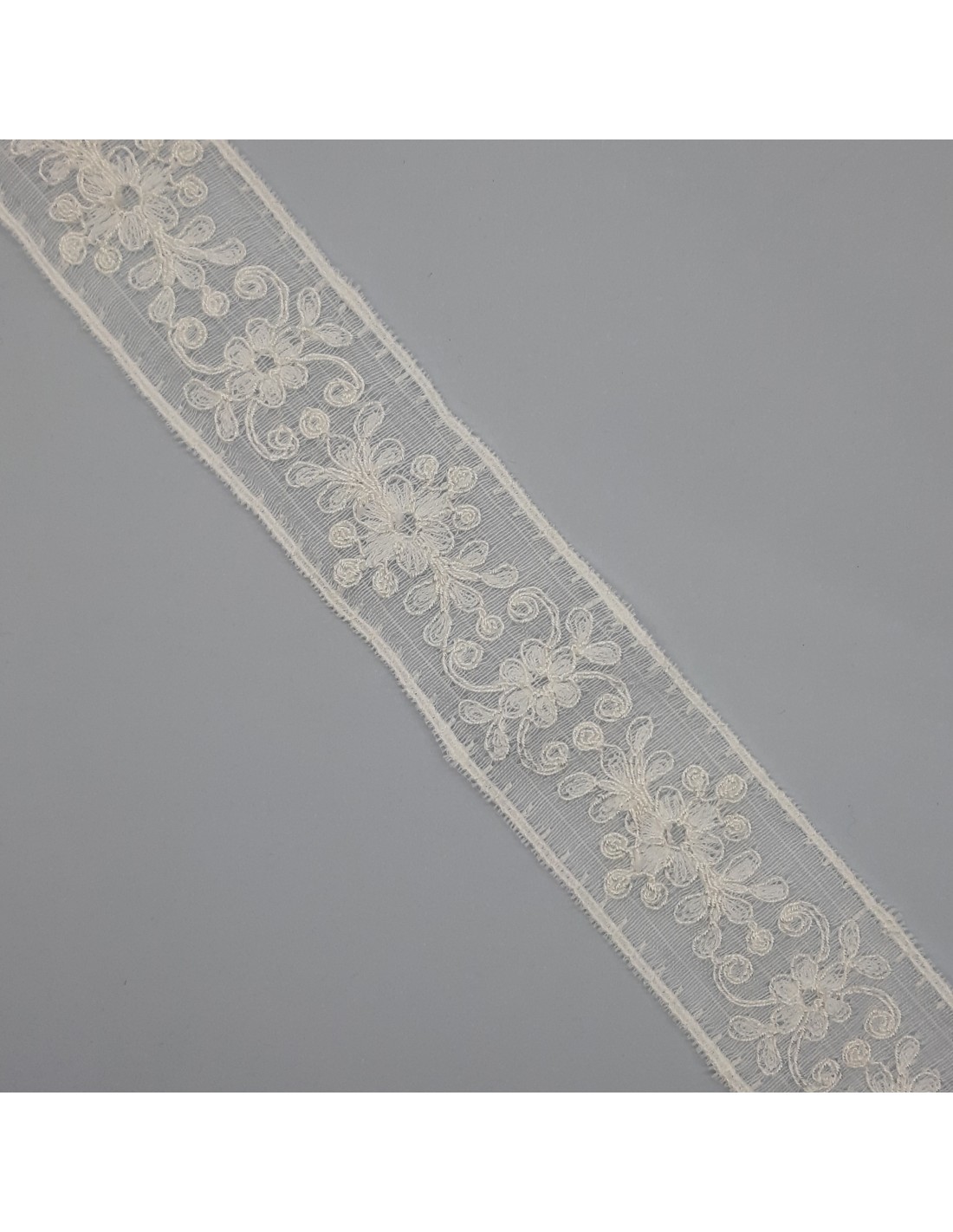 Tira bordada muselina con relieve de color marfil de 5 cms